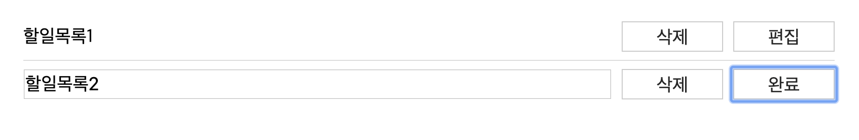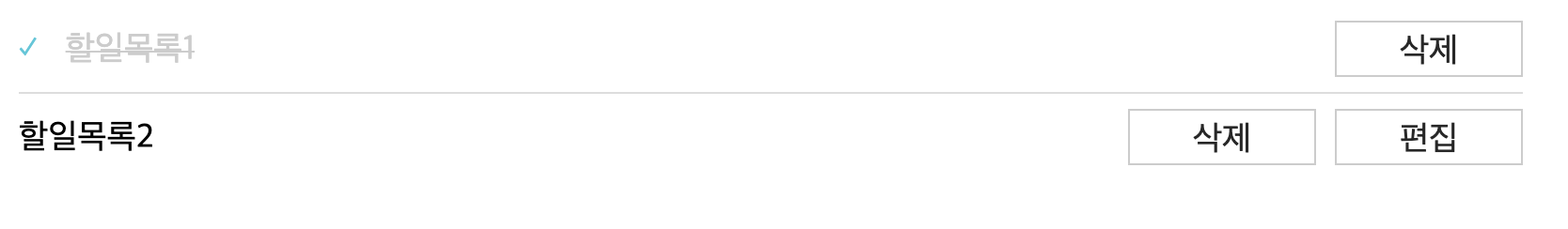 할일목록1처럼 체크가 될 것 입니다. (저는 완료된 목록은 편집할필요없다고 생각되어 none처리 하였습니다.)