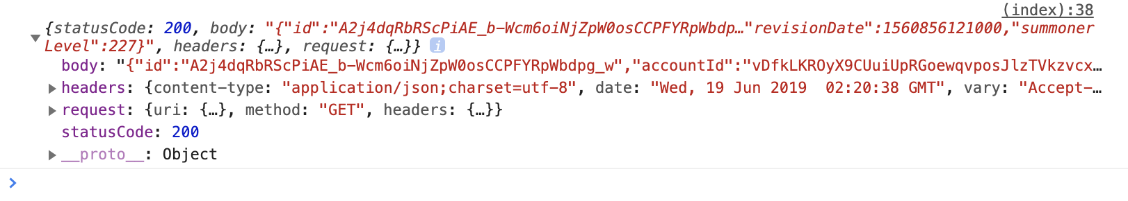 fetch('https://kr.api.riotgames.com/lol/summoner/v4/summoners/by-name/hideonbush?api_key=발급받은key값').then((res) => {