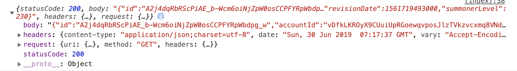 request(`https://kr.api.riotgames.com/lol/summoner/v4/summoners/by-name/hideonbush?api_key=RGAPI-8483906e-0d90-477c-b5fc-79c7d7060112`, function (error, res, body) {