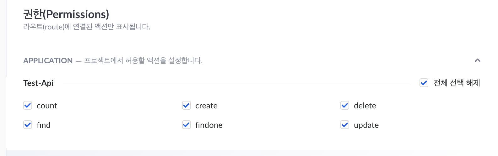 하단에 Test-Api에 대한 권한을 설정하는데, 단순 테스트이므로 전부 선택해주도록합니다.
