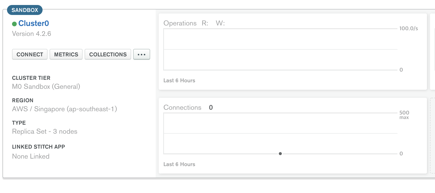 조직만들기 > 프로젝트 생성 > 클러스터 생성(Shared Clusters 선택) > 클라우드 제공 업체 및 지역선택(AWS + 싱가포르 추천)