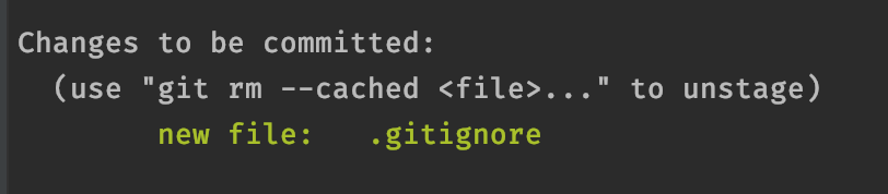 Untracked된 .gitignore파일은 어떤 프로젝트든 계속하여 사용되기 때문에 git add 명령어를 이용해 Tracked 상태로 변경해줍니다.