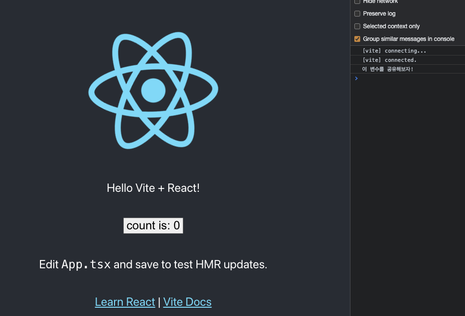 yarn은 yarn install명령을 수행하고 yarn dev는 vite의 개발서버를 시작합니다.