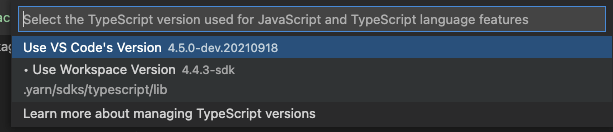 4.4.3-sdk부분을 클릭하면 typescript버젼을 선택할 수 있는 아래와 같은 창에서 sdk를 선택하면됩니다.